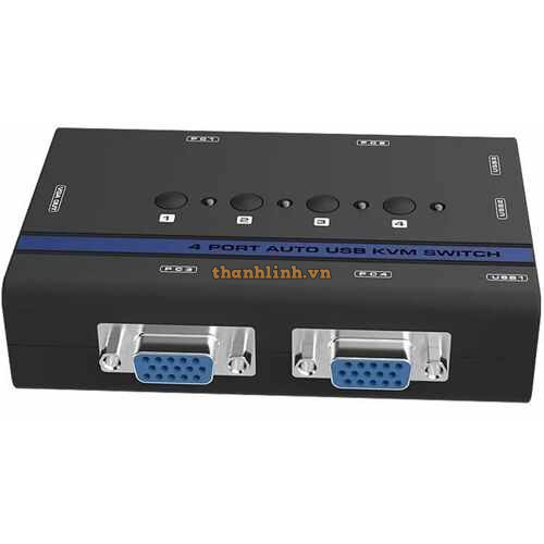 - Bộ chia VGA 1 ra 4 có KVM MT-462KL là bộ chuyển mạch cho 4 case máy tính sử dụng chung một màn hình, một bộ phím chuột cổng USB,1 bộ phím, chuột, một màn hình kiểm soát 4 máy tính.
