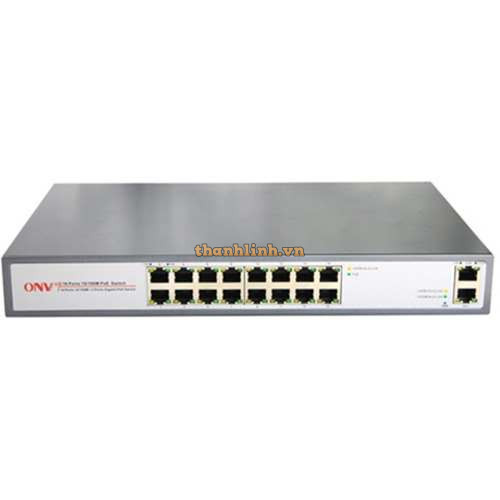 Thiết bị chuyển mạch 18 Ports PoE Switch with with 16X100M PoE Ports+2GE/2 Gigabit / Fiber Ports ONV POE31016P