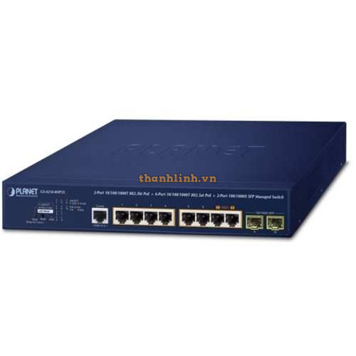 Bộ chuyển mạch 8-Port 1000T PoE + 2-Port 1000T + 2-Port 1000X SFP Planet GS-4210-8P2T2S