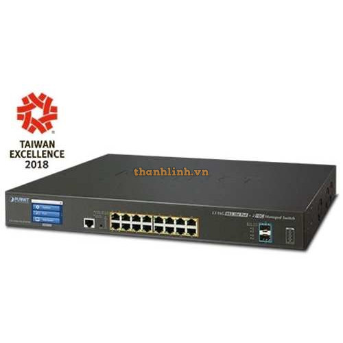 Bộ chuyển mạch có màn hình LCD 16-Port 1000T PoE + 2-Port 10G SFP+ Planet GS-5220-16P2XVR