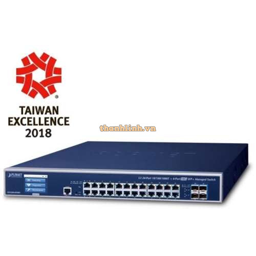 Bộ chia mạng L3 24-Port 10/100/1000T + 4-Port 10G SFP+ Managed Ethernet with LCD Touch Screen Planet GS-5220-24T4XV/GS-5220-24T4XVR