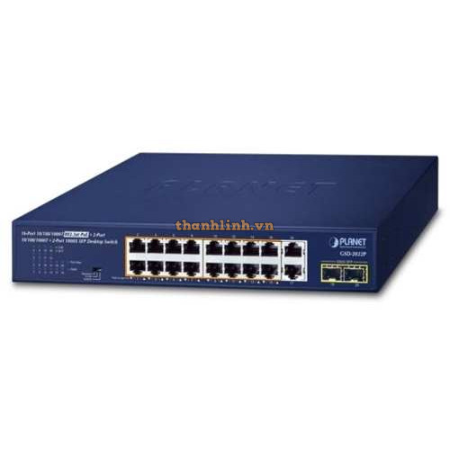 Bộ chuyển mạch 16-Port 1000T PoE + 2-Port 1000T + 2-Port 1000X SFP Planet GSD-2022P