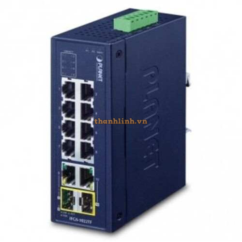 Bộ chuyển mạch Industrial 8-Port 100TX + 2-Port Gigabit TP/SFP Combo ( -40 75 độ C ) Planet IFGS-1022TF