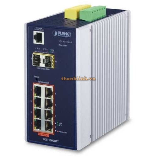 Bộ chia mạng công nghiệp Planet 8 Port 100/1000 POE + 2-port SFP IGS-10020HPT