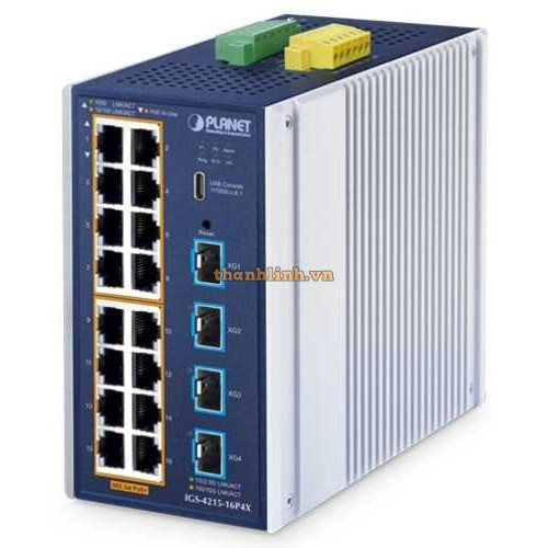 Bộ chuyển mạch Ethernetcông nghiệp L2+ 16 cổng 1000T 802.3at PoE + 4 cổng 10G SFP+ Planet IGS-4215-16P4X