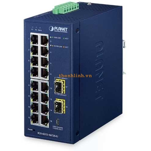 Bộ chuyển mạch công nghiệp L2/L4 16 cổng 1000T + 2 cổng 100/1000X SFPvới bảng điều khiển USB Planet IGS-4215-16T2S-U