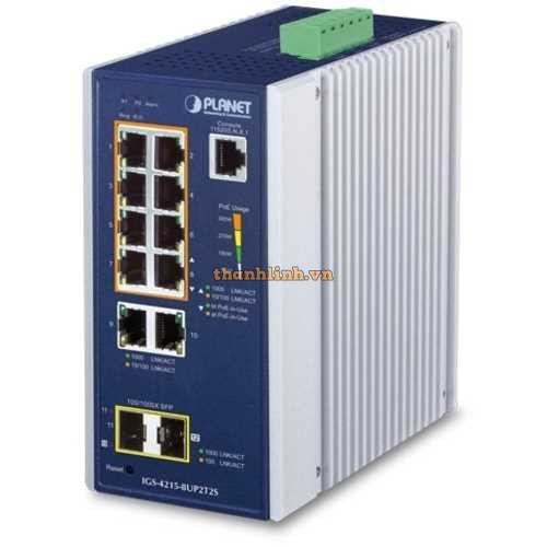 Bộ chia mạng công nghiệp Planet 8 Port 100/1000 802 PoE +2 Port 100/1000 + 2 Port SFP IGS-4215-8P2T2S