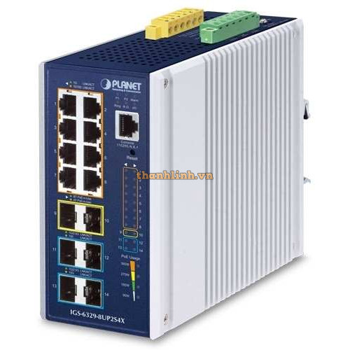 Bộ chia mạng Planet Industrial L3 8-Port 10/100/1000T 802.3bt PoE + 2-Port 1G/2.5G SFP + 4-Port 10G SFP+ IGS-6329-8UP2S4X