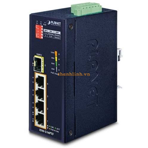 Bộ chuyển mạch Industrial 4-port 100TX PoE+ plus 1-Port 100FX Planet ISW-514PTF