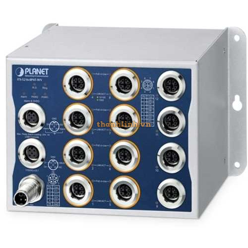 Bộ chuyển mạch Ethernetcông nghiệp L2+ 8 cổng 1000T 802.3at PoE M12 + 4 cổng 1000T M12 Planet ITS-5216-8P4T-WV