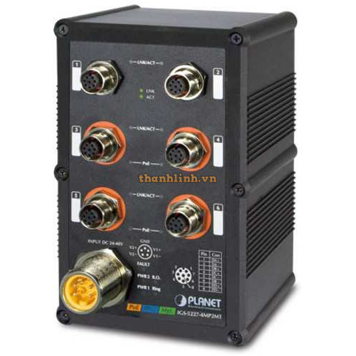 Industrial Switch Planet PoE IGS-5227-4MP2MT được quản lý lớp 2+ công nghiệp, đi kèm với vỏ công nghiệp được xếp hạng IP67, gồm 4 cổng 10/100/1000 BASE-T 802.3at PoE +, 2 cổng 10/100/1000 BASE-T , và định tuyến tĩnh Lớp 3 , cung cấp mức độ miễn nhiễm cao chống lại nhiễu điện từ và đột biến điện nặng thường được tìm thấy trên các tầng nhà máy hoặc trong các tủ điều khiển giao thông bên lề đường. IGS-5227-4MP2MT có thể dễ dàng gắn trên thanh ray DIN hoặc tường chiếm ít không gian hơn. Industrial Switch Planet IGS-5227-4MP2MT cũng cung cấp giải pháp mạng Power over Ethernet nhanh chóng, an toàn và tiết kiệm chi phí để giám sát an ninh IP cho các doanh nghiệp và doanh nghiệp nhỏ.
