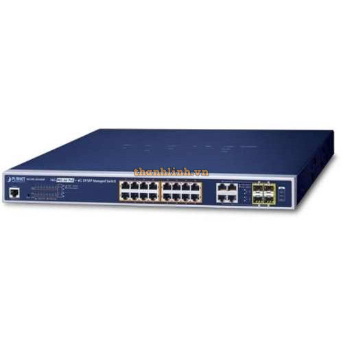 Bộ chuyển mạch 16-Port 1000BASE-T PoE + 4-Port Gigabit TP/SFP Combo Planet WGSW-20160HP