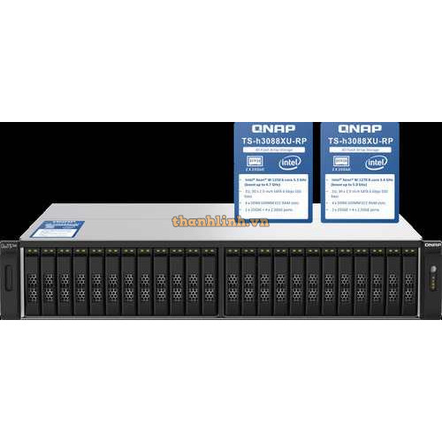 Thiết bị ổ cứng lưu trữ mạng QNap 2U 30-bay 2.5" SATA 6Gbps all-flash TS-h3088XU-RP-W1270-64G