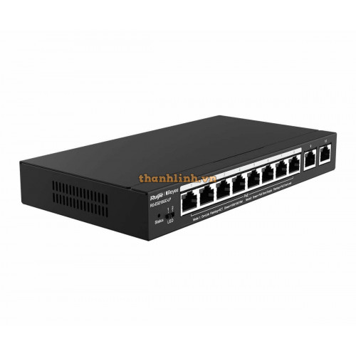 Thiết bị chuyển mạch POE 10-Port Gigabit Smart POE Switch, 8 PoE/POE+ Ports with 2 Gigabit RJ45 uplink ports, 70W PoE Ruijie RG-ES210GC-LP