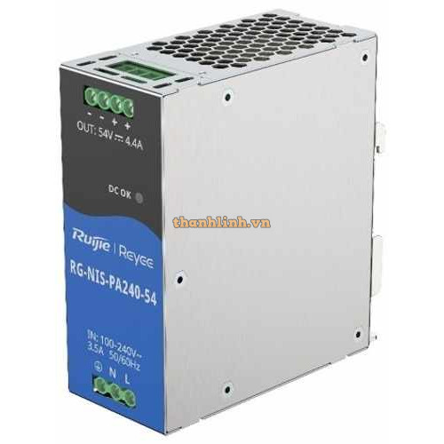 - RG-NIS-PA240-54 là mô-đun nguồn DC được thiết kế để cấp nguồn cho các bộ chuyển mạch, cung cấp điện áp định mức 54 V ở 4,4 A cho hệ thống.