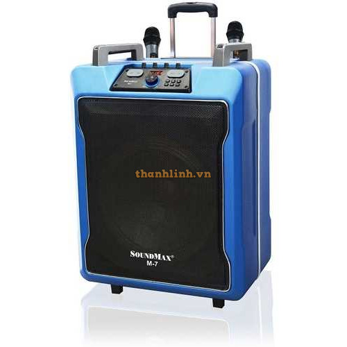 - Soundmax M-7 là mẫu loa có thiết kế mạnh mẽ một chiếc vali kéo lớn hướng đến những khách hàng cần một bộ loa đa năng, có thể di chuyển dễ dàng và quan trọng là có thể cùng hát thỏa thích với nhau trong những lần sum họp gia đình, bạn bè.