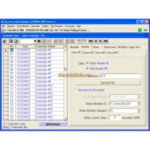 Phần mềm kiểm soát cửa Syris model SYSOFT95A