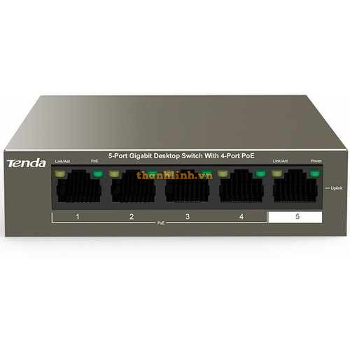 - TEG1105P-4-63W là switch PoE của Tenda gồm 5 cổng RJ45 10/100/1000Mbps Base-TX. Các cổng 1-4 tuân theo tiêu chuẩn IEEE 802.3af (công suất PoE tối đa: 15,4W) và chuẩn 802.3at (công suất PoE tối đa: 30W). Switch cung cấp công suất PoE tối đa là 58W và có thể cấp nguồn cũng như trao đổi dữ liệu với các AP, camera IP và điện thoại IP thông qua cáp CAT5. Ngoài ra cũng cung cấp các chế độ quản lý đơn giản như VLAN, giúp giảm chi phí cáp cho các thiết bị IP đầu cuối như AP và camera IP.