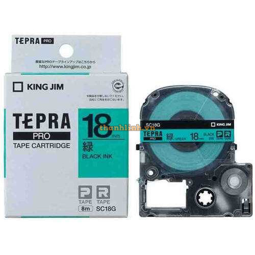Nhãn in TEPRA SC24G- Màu sắc: Chữ đen trên nền xanh lá (Black Ink / Green)- Loại nhãn: Nhãn đa lớp- ..