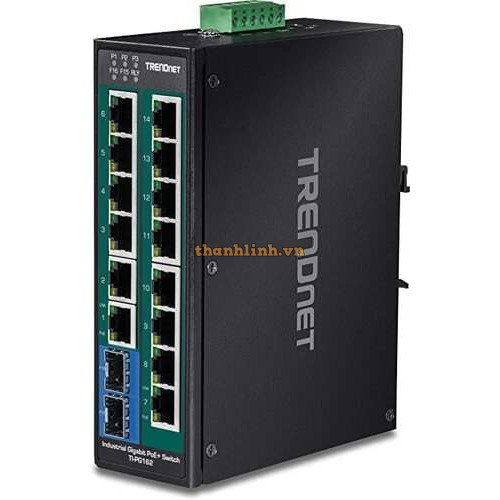 16-Port Hardened Industrial Gigabit PoE + DIN-Rail Switch Trendnet TI-PG162