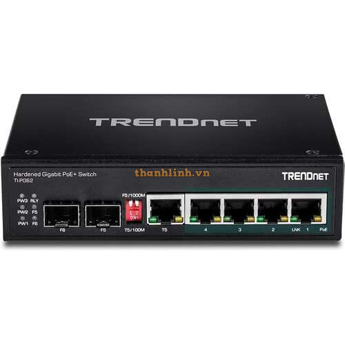 6-port hardened Industrial Gigabit PoE+ Switch ( 5 Gigabit / 1 shared SFP / 1 dedicated SFP ) Trendnet TI-PG62