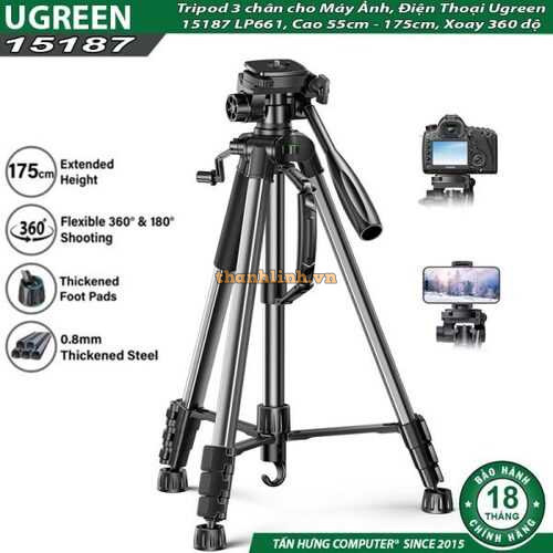 Tripod 3 chân cho Máy Ảnh, Điện Thoại Ugreen 15187 LP661, Cao 55cm – 175cm, Xoay 360 độ