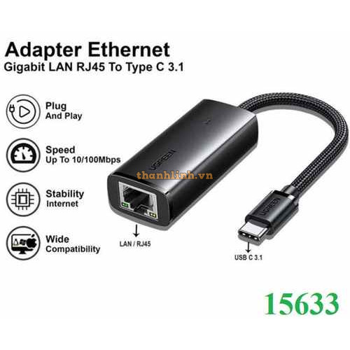 Cáp chuyển đổi USB Type-C 3.1 to Lan Gigabit 10/100Mbps Ugreen 15633 cao cấp