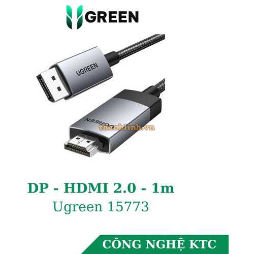 Cáp Displayport to HDMI 2.0 dài 1m hỗ trợ 3D 4K@60Hz Ugreen 15773
