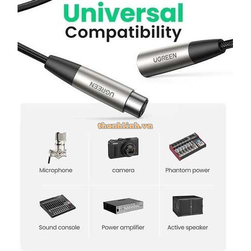 Cáp nối dài XLR 3pin âm dương bọc lưới dài 1m chính hãng Ugreen 20499 cao cấp CHỈ BÁN SỐ LƯỢNG NHIỀU TRÊN 5 ĐƠN VỊ HoẶC KHÁCH HÀNG TRẢ CHI PHÍ VẬN CHUYỂN