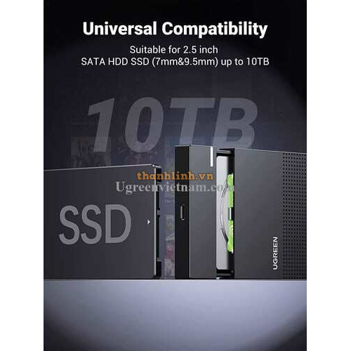 Thương hiệu: Ugreen Model: 70499 Danh mục: HDD BOX Tính năng: Box đựng ổ cứng 2.5 sata cổng USB Type..