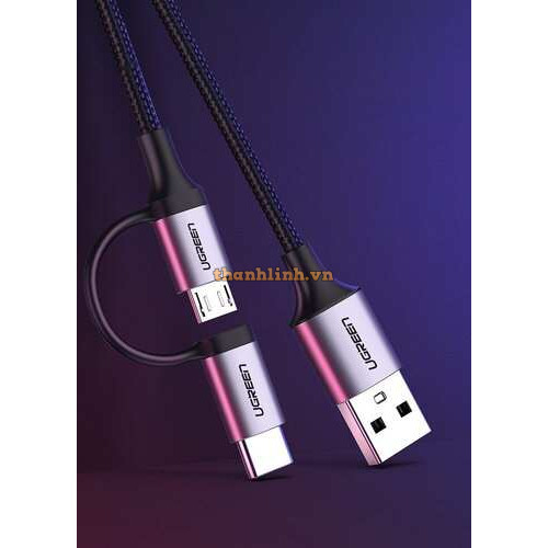 Cáp sạc, dữ liệu 2 in 1 USB A sang USB Micro + Type-C dài 1M Ugreen 30875 Sạc nhanh, bện dù, cao cấp