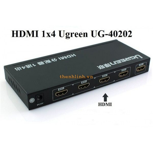 - Bộ chia HDMI 1 ra 4 Full HD Ugreen 40202, cho phép người dùng kết nối 1 nguồn phát HD duy nhất như Android TV Box, PC, Laptop, PS3,...kết nối đồng thời cùng lúc với 4 màn hình hiển thị. Cho chất lượng tín hiệu xuất ra sắc nét, ổn định.