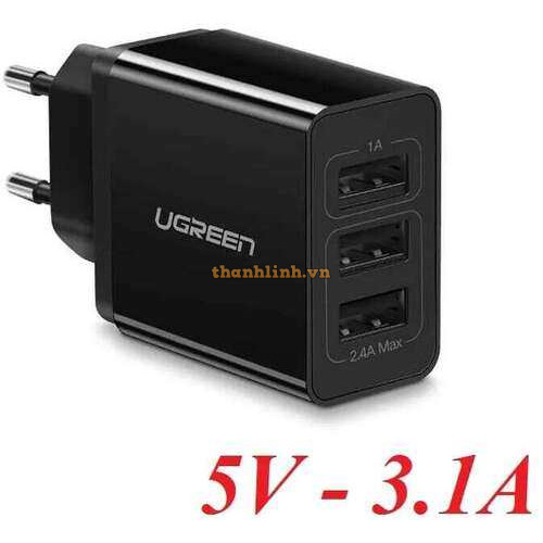 Sạc Ugreen 3 Cổng USB 5V/3.1A (Đen) 50816
