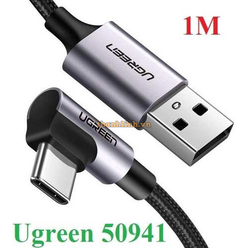 Cáp sạc, dữ liệu USB-A to USB Type-C bẻ góc 90 độ dài 1M Ugreen 50941 cao cấp