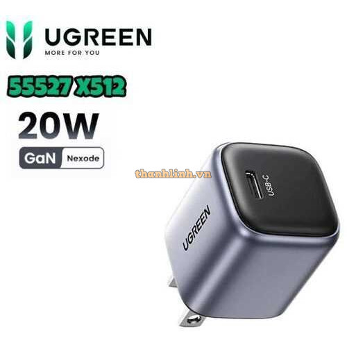 Củ sạc nhanh Nexode Mini 20W GaN USB-C Ugreen 55527 X512, Chân dẹt không gập