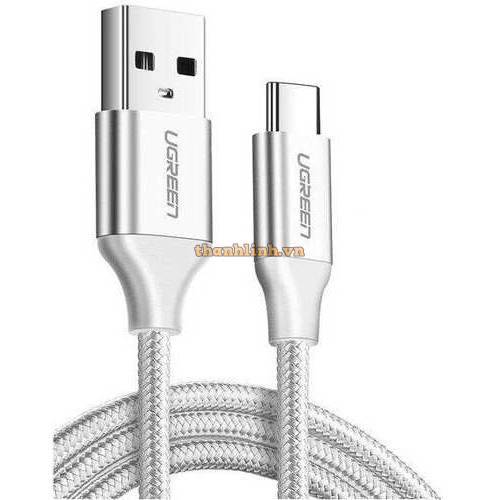 Ugreen 60225 3m 2.0 màu trắng cáp Usb ra Type-C sạc và truyền dữ liệu US287 20060225