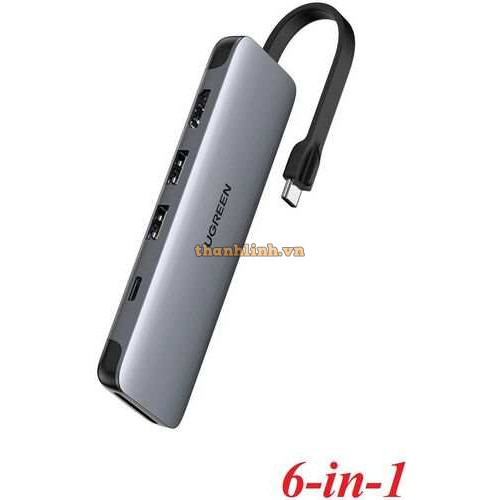 Hub USB Type-C 6 trong 1 ra HDMI 4K@30Hz, USB 3.0, Lan 1Gbps, Sạc PD 100W Ugreen 15598 cao cấp