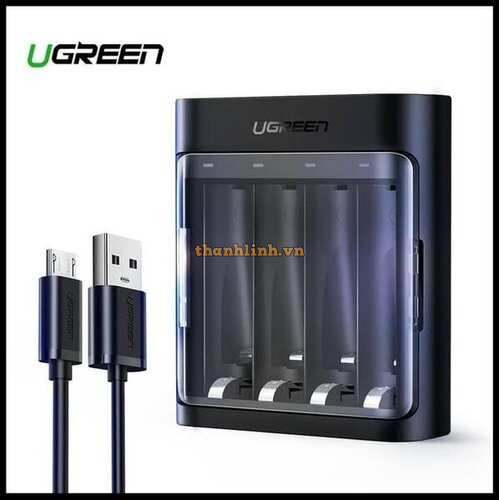 Ugreen 60406 bộ sạc lấy điện từ usb cho pin 2A 3A 4 khe sạc NI-MH Battery 5V 1.5A màu đen có. kèm cáp Micro USB CP617 10060406.