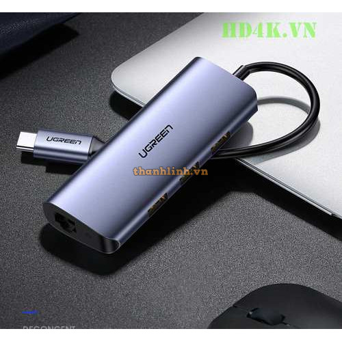 Bộ chia Type C 4 cổng USB 3.0 + Lan RJ45 Ugreen 60717