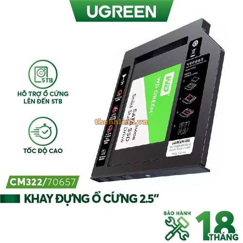 Caddy hdd khay đựng ổ cứng 2.5" cho Laptop có ổ CD mỏng 9.5mm Ugreen 70657 cao cấp CHỈ BÁN SỐ LƯỢNG NHIỀU TRÊN 5 ĐƠN VỊ HoẶC KHÁCH HÀNG TRẢ CHI PHÍ VẬN CHUYỂN