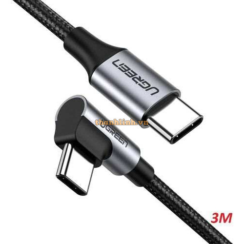 Cáp dữ liệu, sạc nhanh 60W Type-C to Type-C bẻ góc 90 độ dài 3M Ugreen 80714 cao cấp