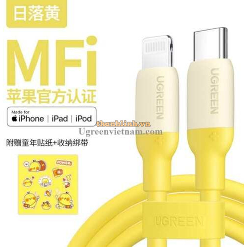 Cáp Ugreen USB-C to Lightning Silicone 1m (vàng) 90226
