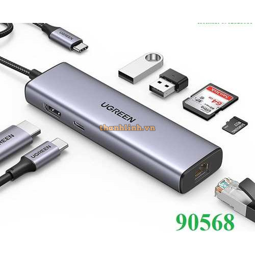 Hub chuyển đổi USB Type-C ra Lan 1000Mbps Kèm HUB 3 Cổng USB 3.0 Ugreen 20920 cao cấp