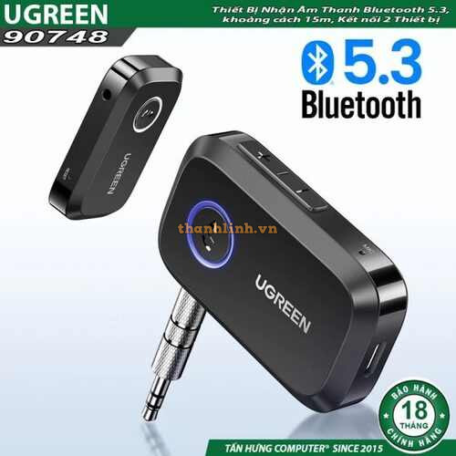Thiết Bị Nhận Âm Thanh Bluetooth 5.3 Ugreen 90748, khoảng cách 15m, kết nối cùng lúc 2 điện thoại