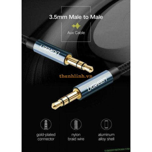 Thông số kỹ thuật: Cáp Audio 3.5mm dây tròn 5M Chính hãng Ugreen 10737 mạ vàng 24K Hãng sản xuất: UG..