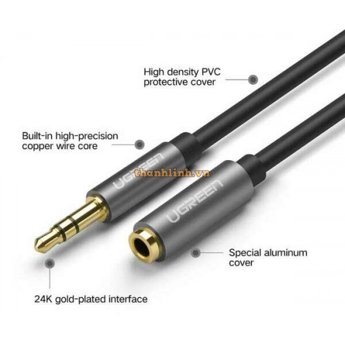 - Cáp Audio 3.5mm nối dài 3m Ugreen 10595 giúp mở rộng bất kỳ jack 3.5mm mang đến cho bạn yêu thích âm nhạc bằng cách kết nối thiết bị di động của bạn, giống như iPhone, iPod hoặc bất kỳ máy nghe nhạc MP3, đến một loa âm thanh trên xe hoặc loa system. Chất lượng hoàn hảo cho bạn tận hưởng âm thanh cuộc sống tuyệt vời.