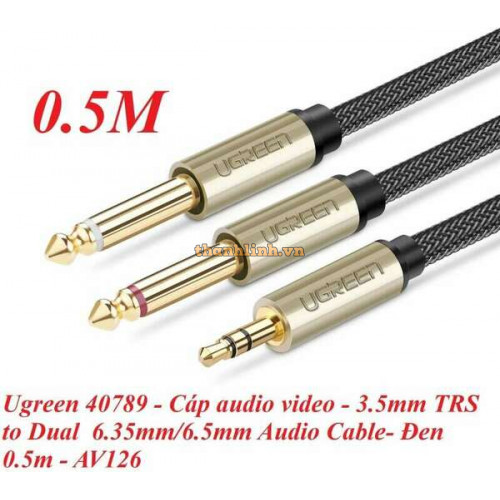Cáp âm thanh 3,5mm TRS ra Dual 6,35mm TS model đen 2M Ugreen 40792
