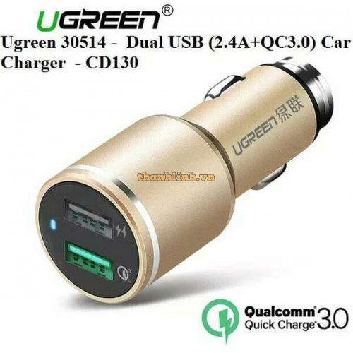Bộ sạc xe hơi với Oualcomm sạc nhanh 3.0 Technology 30W Dual USB model CD130 vàng Ugreen 30514