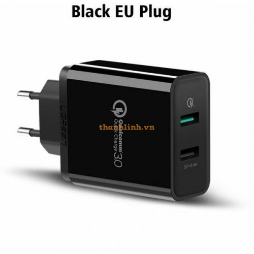 Bộ sạc 3.0 sạc nhanh 2 4A+ Dual USB model CD132 đen Ugreen 40712