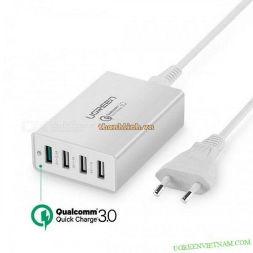 Bộ sạc 3.0 sạc nhanh 2 4A+ Dual USB model CD132 trắng Ugreen 40713